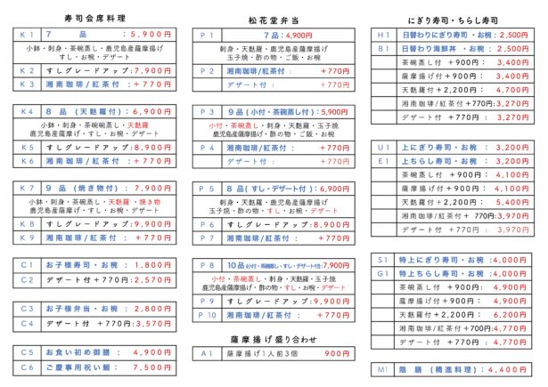 | ◆ ご会食メニュー ◆ | ||||||||