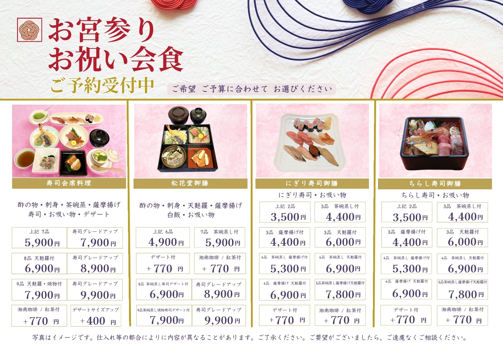 「和食寿司屋」で お子様の「お宮参り」のお祝いお食事会はいかがですか? お電話( 0466-23-2487 )または お宮参りご予約お問い合わせフォームより |